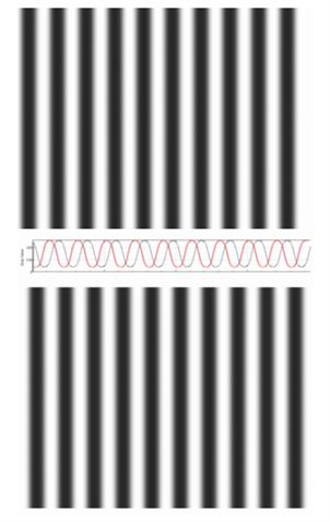 相移方法利用一組灰度圖像,其像素強度由正弦波模式定義,如圖2所示。通常,使用三個(或可能更多)圖像之間具有已知相移的圖像。將相移后的圖案順序投影到對象上,然后在進行相位展開操作之后,將所得的差異圖像與參考平面進行比較,以提取原始對象的表面特征。