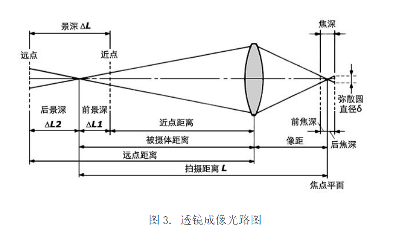 首先在了解光圈與景深的關(guān)系之前,我們先介紹兩個概念。光線射入透鏡匯聚成一點,在數(shù)學(xué)上,這個點我們稱之為焦點。但是在焦點前后形成的光線的聚集和擴(kuò)散,會產(chǎn)生一個擴(kuò)大的圓,這個圓就是允許彌散圓,彌散圓仍然足夠清晰呈現(xiàn)物體,通常我們認(rèn)為這是“合焦”。因此,我們通常用允許彌散圈來作為成像清晰和成像模糊的界限。焦深:兩個允許彌散圈的距離我們稱之為焦深。景深的大小與焦深有著密切的聯(lián)系(如圖3.成像光路圖)。前焦深對應(yīng)著前景深,后焦深對應(yīng)著后景深。所以,要知道光圈與景深的關(guān)系,必須先了解光圈與彌散圈之間的關(guān)系。