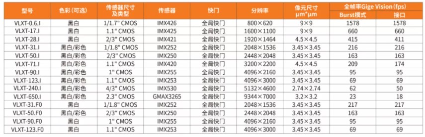 LXT系列相機帶寬高達1.1Gb/s,集成簡單,性價比高,支持超長銅纜和長達10公里的光纜一一無需圖像采集卡或介質(zhì)轉(zhuǎn)換器。此外,該系列相機還支持液體鏡頭井搭配4路電源輸出,具有定序器、Burst模式等高級功能,并且支持IEEE 1588精確時間協(xié)議,可為具體應用提供合適的解決方案。