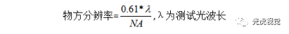 遠心鏡頭中提到的數(shù)值孔徑NA指像方數(shù)值孔徑,數(shù)值孔徑NA值越大,鏡頭分辨率和亮度越佳。數(shù)值孔徑NA與物方分辨率的對應(yīng)關(guān)系為: